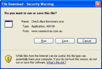 1. Click on the link ‘Check Alice Borrowers.exe’ to download and execute the file containing the procedure to check the exported Admin Student Data against the Alice library borrower data.