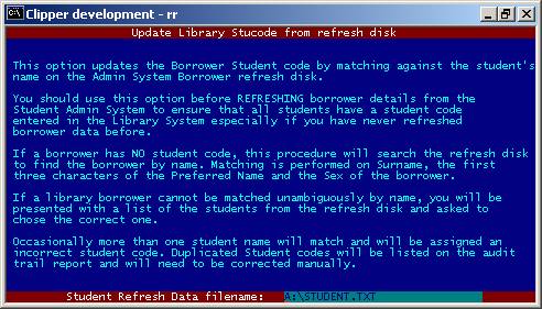Click on the link ‘Check Alice Borrowers.exe’ to download and execute the file containing the procedure to check the exported Admin System Student Data against the Alice library borrower data.